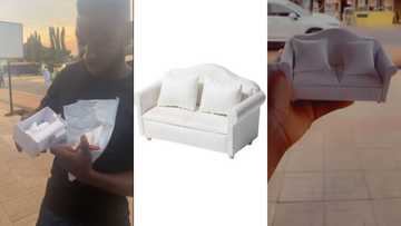 The good was processed for close to a month and when it arrived, it turned out to be a tiny model of the sofa which was delivered to him on a motorbike.