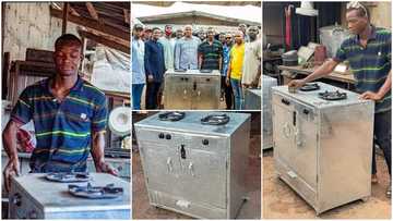 Genius final year student builds gas cooker with local materials, Gov't official visits him