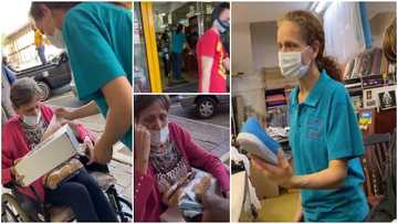 The stunned woman was emotional as she received the gifts with joy and appreciated the kind man.