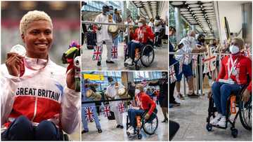 Moment Nigerian lady who represented Britain at Paralympics was welcomed by family at the airport