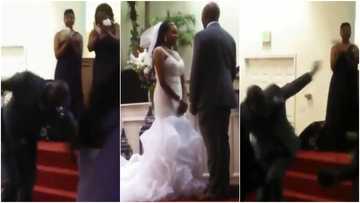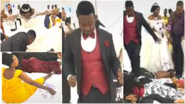 Groom falls under anointing after kissing bride on wedding day; many react as video goes viral