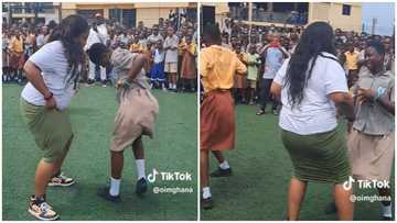 Curvy lady displays nice moves as she battles two students in a dance competition, adorable video earns praise online