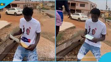WASSCE 2024: SHS graduate kneels in front of NPP billboard to thank Akufo-Addo after passing his exams