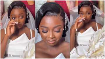 Beautiful Ghanaian bride gets emotional on wedding day, shed tears of joy, video stirs reactions