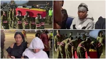 She can't watch: Christian Atsu's twin sister breaks down at Kotoka Airport, moves awa from his casket (Video)