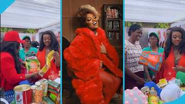 Jackie Appiah hands out food items and souvenirs to reward her community members at her birthday party