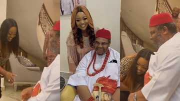 Respectful Jackie Appiah kneels before legendary Pete Edochie as they meet in Nigeria, video warms hearts