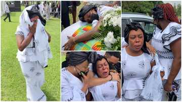 Heartbroken Afia Schwar sheds uncontrollable tears at father's burial, Tracey Boakye, Diamond console her in sad videose