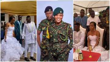 Tight security as 1st photos from wedding of lady who 'drained' and dumped boyfriend to marry soldier emerge