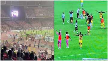 Black Stars players run as angry Nigerian fans invade the pitch in Abuja, tear gas fired in video