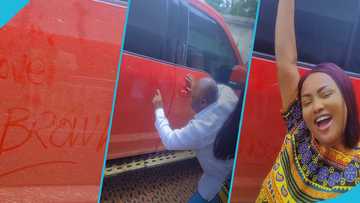 Nana Ama McBrown's Friend Writes On Her Dusty Red Ford Ranger With Finger, She Smiles In Video