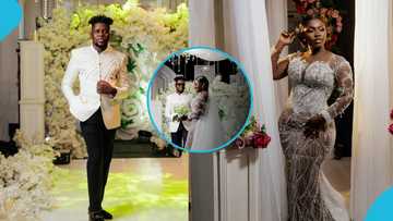 Ghanaian TikToker Felicia Osei looks flamboyant in a stylish white lace wedding gown and flawless makeup