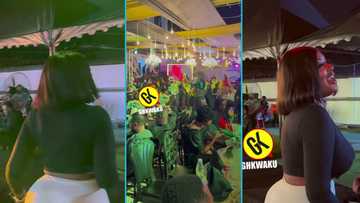 Ghanaians blast Lovia for wearing tight leggings and crop top to Mama Palasco's funeral dinner, video