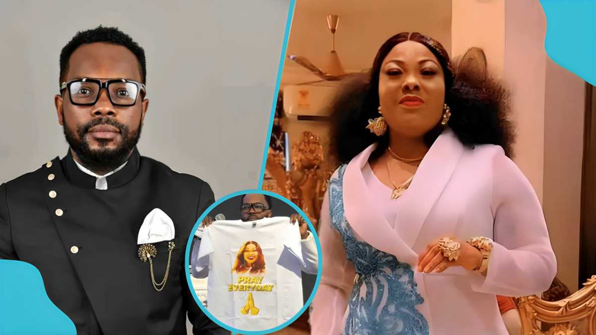 During a church service on Sunday, March 1, Angel Asiamah unveiled a nice T-shirt, which he claimed would be worn by fans and loved ones of Nana Agradaa to welcome her from prison.