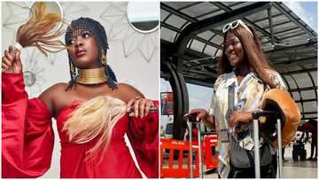 Asantewaa slays in biker shorts and baggy shirt at KIA, flaunts curves before flying out of Ghana