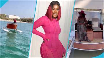 Fella Makafui goes on a solo electric catamaran in Dubai, flaunts lavish lifestyle in video