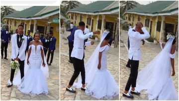 Ghana wedding: Groom amused after seeing how friends run during bouquet toss tradition: “Stop running from marriage”