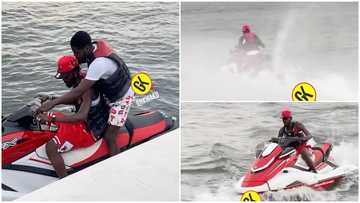 Black Sherif displays fire skills on a jet ski, Ghanaians concerned for his safety: "Don't Castronise him"