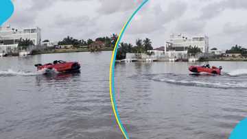 Two Ghanaian ladies drive a luxury boat designed like a sports car at Ada in Ghana, vide goes viral
