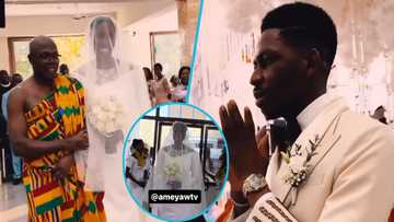 Moses Bliss' white wedding: Singer emotional as his wife Marie approaches altar, video emerges