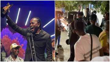 "This same month, just four years ago, I was in Kumasi Academy in my final year. And now, I've won the song of the year. Praise to God," he said while looking sober.