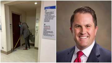 Wowed Oyinbo man shares photo after catching his black director cleaning the office floor in the morning
