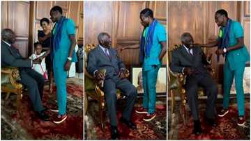 Michael Blackson has jovial conversation with Kufuor in video: Ghanaians get angry over his posture