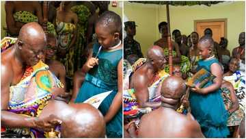 Adorable 7-year-old girl presents book she wrote to Asantehene; takes heartwarming photos with him