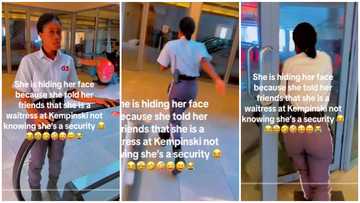Pretty Ghanaian lady who works as a security guard runs as she realizes she is being filmed: "She claimed to be a waiter"