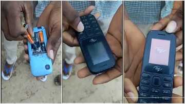 Student fixes torchlight batteries in phone and makes it work at Comboni Secondary Technical School