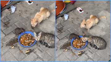 Ghanaian man screams in astonishment as he sees cats sharing food with mouse, video sparks reactions