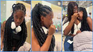 Ghanaian lady sheds tears at airport as she readies to travel abroad, bids touching farewell to relative
