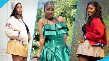 Felicia Osei marks birthday, flaunts thick curves and fine legs in mini skirts and varsity bomber jackets