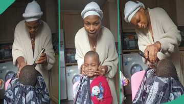 Wise Nigerian woman in UK turns barber at home, shaves her son's hair: "GH₵670 every 3 weeks"