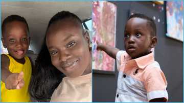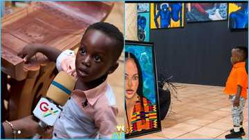 The video, which YEN.com.gh sighted on the TikTok page of his mother @kuukuatheartist showed the moment the prodigy was seen admiring the artwork.
