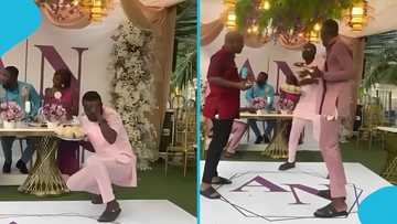 Young man dances at a wedding in front of the couple while balancing banku: "It's the bride's ex"