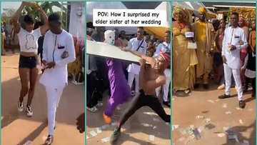 Video shows moment bride's brother staged epic surprise for sister: "Her husband dey regret wedding"