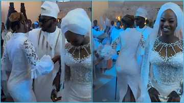 Ghanaian lady hooks groom on dancefloor as wife waits, video trends: "She's probably a side chick"