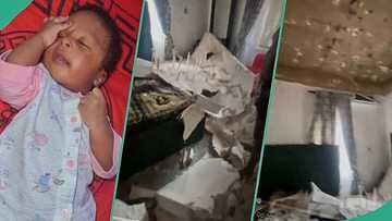 Emotional father praises God as baby survived accident after POP ceiling fell in the bedroom, video