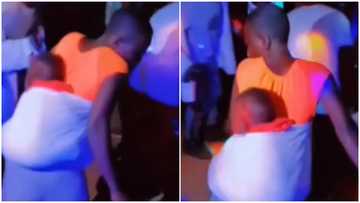Eeeish - Lady carrying baby at her back causes stir with her unusual dance moves at party; peeps react